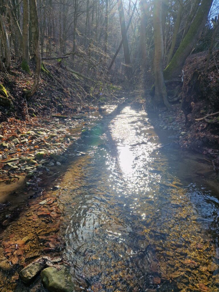 - In eigener Sache: Mindestens einmal monatlich gehen befugte (öffentliche) Organe Abschnitte des Baches ab, um jegliche Kontamination des Wassers zu verfolgen.