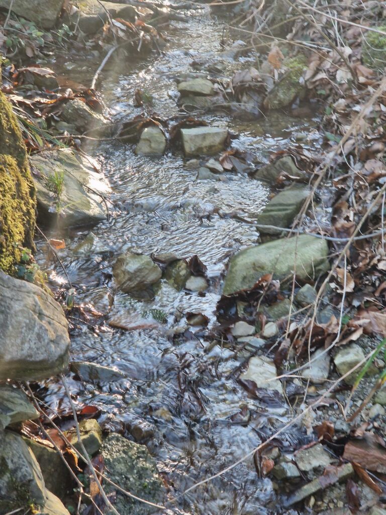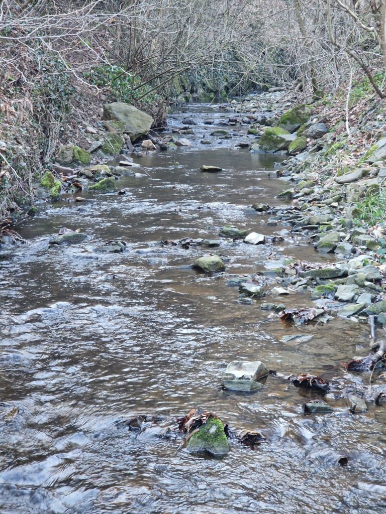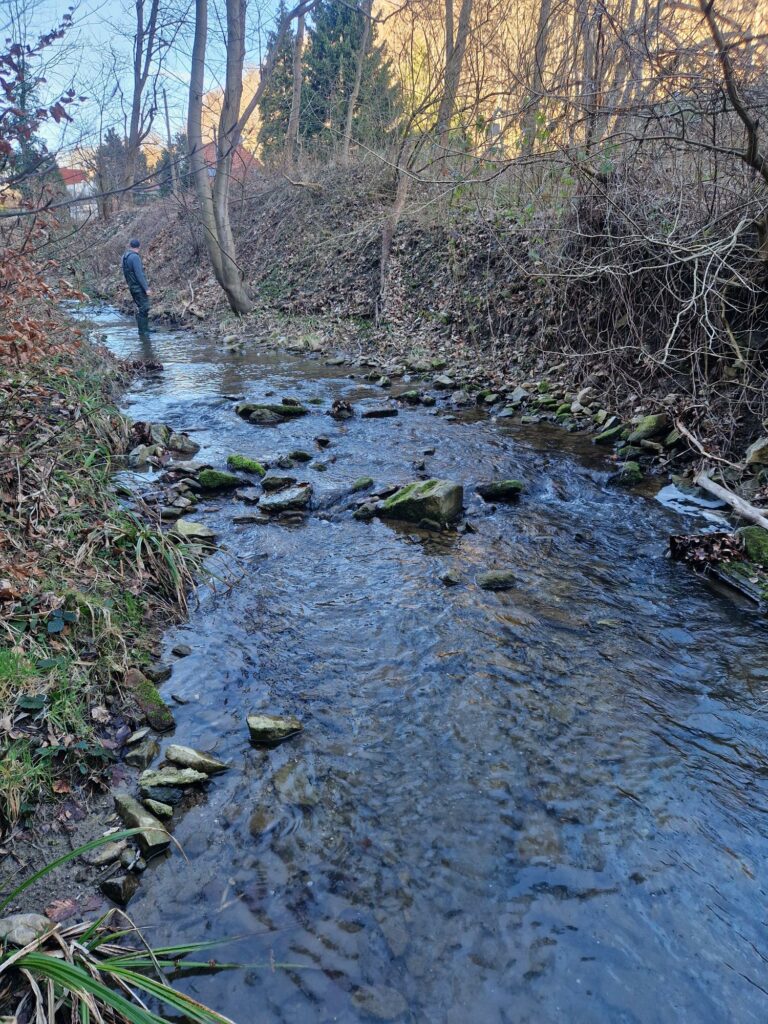 - Über Jahre wurde der Bach so sehr verschmutzt, dass die ursprüngliche Fischpopulation so gut wie komplett ausgerottet wurde. Durch das Ablassen von Schwimmbecken, Grauwasser und die Krebspest ist der gesamte Bestand an Steinkrebsen gestorben.